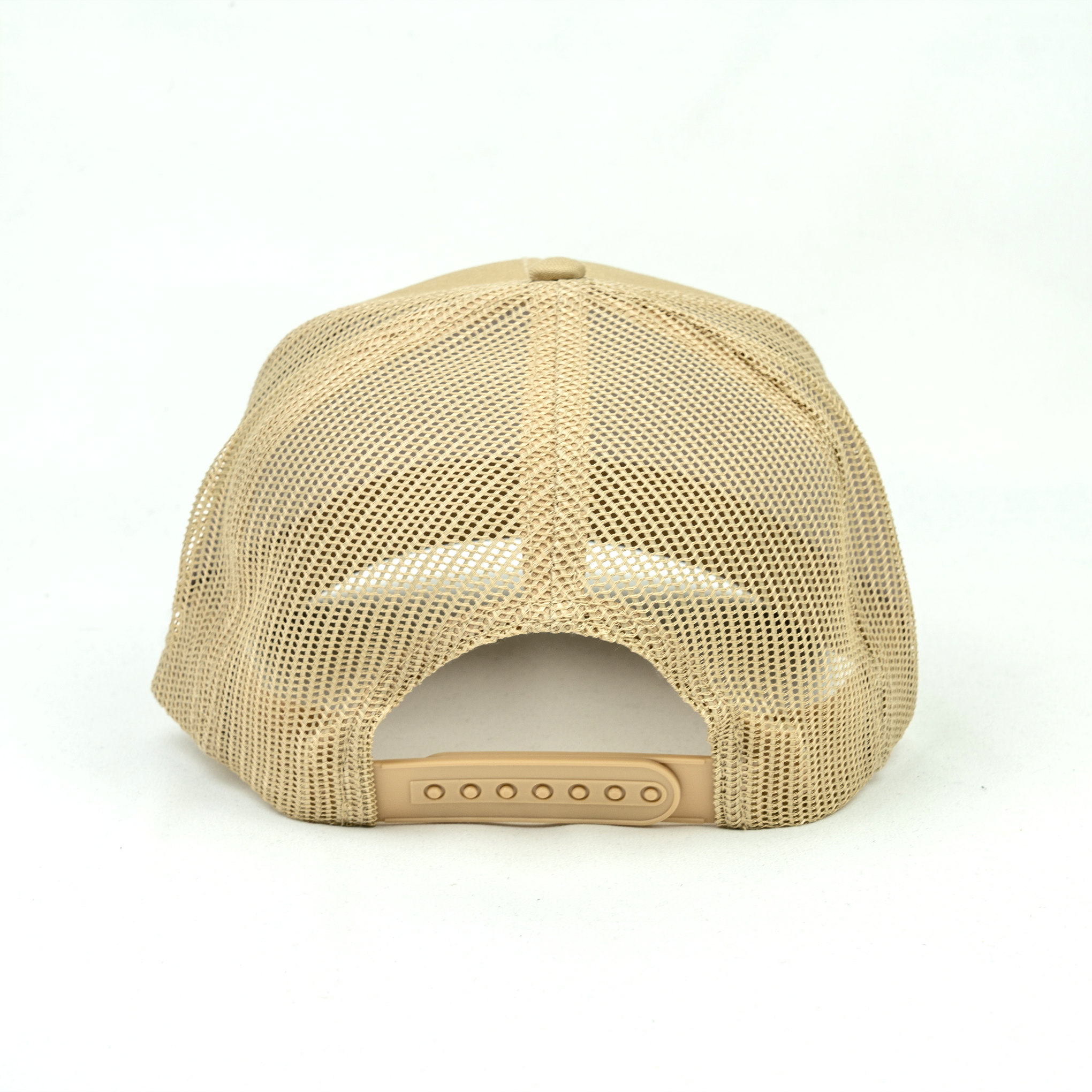 Designed with a mid-profile crown and clean structure, this trucker hat delivers a timeless silhouette with modern ease. A structured front panel meets a mesh back for balanced comfort and breathability. A refined essential—built for versatility, wearability, and effortless style.
