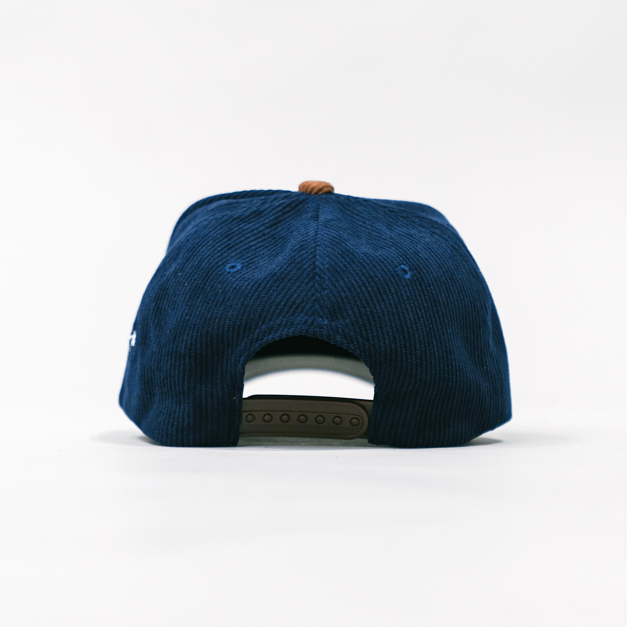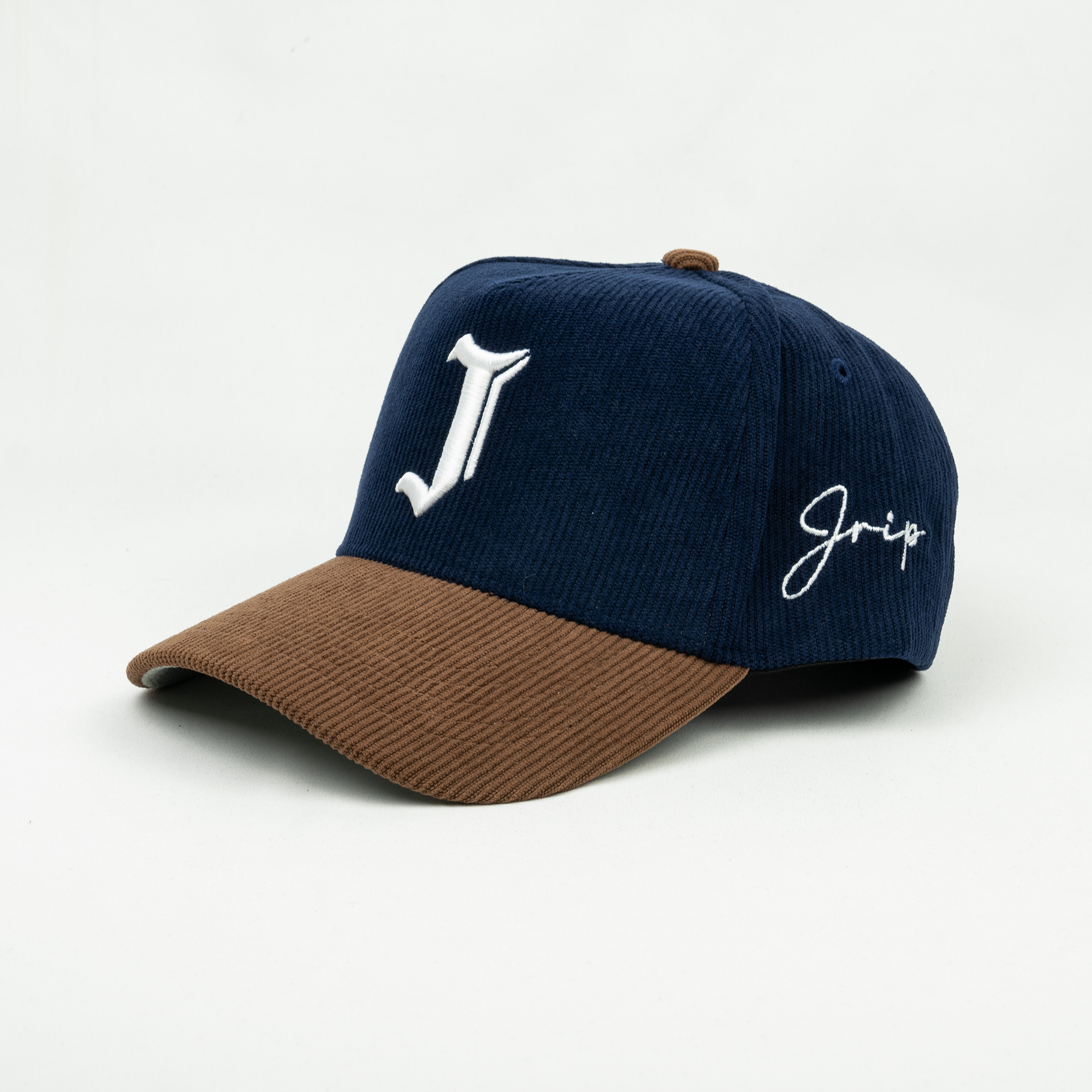"J" Signature Snapback Hat (NAVY/BROWN CORDUROY)
